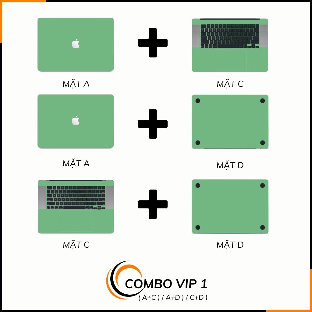 - Macbook của bạn sẽ được dán MẶT A, MẶT C, MẶT D ( KHÔNG DÁN PHÍM ).