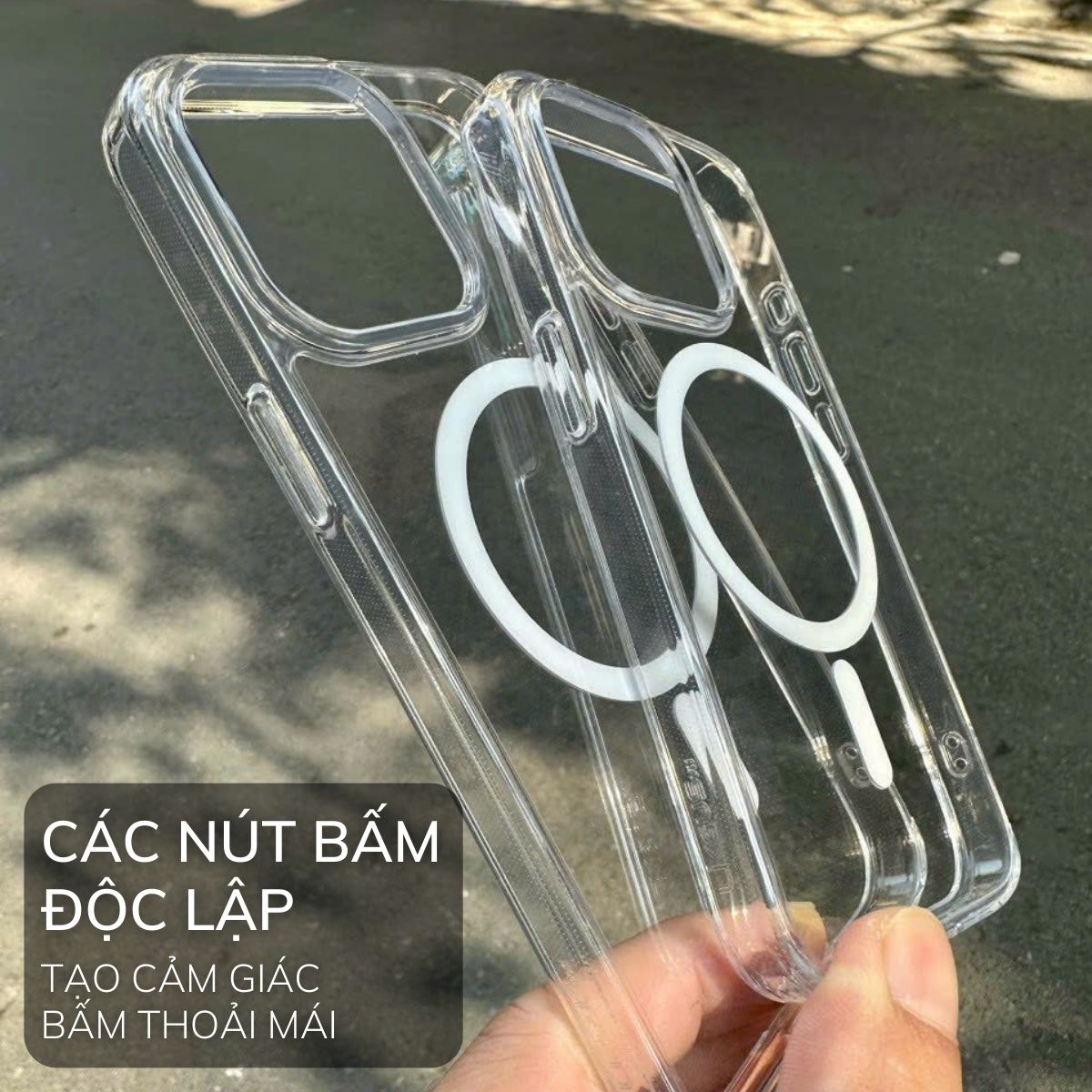 - Ốp lưng bảo vệ camera với thiết kế nút nguồn và các phím âm lượng mềm cực kì dễ bấm.